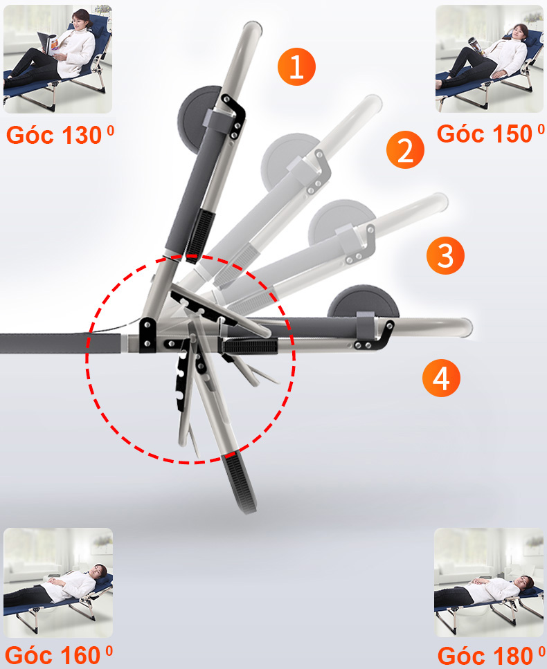 Đặc biệt phần đầu có 4 nấc điều chỉnh tư thế nằm