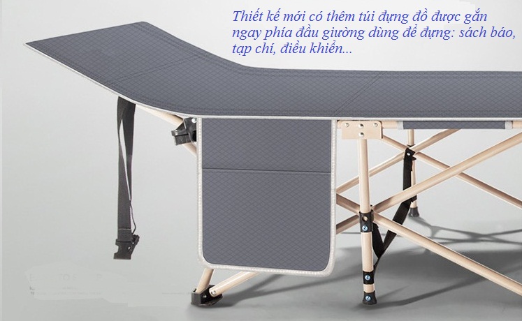 - Giường bạt văn phòng có tính cơ động cao, xếp gọn được dễ dàng trong túi xách du lịch, có thể đem theo khi đi xa, picnic, câu cá, tắm biển...