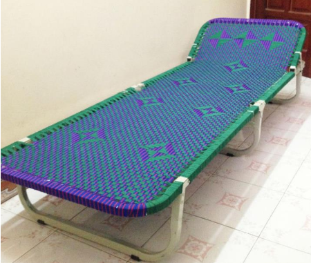 - Vật liệu: Khung giường được làm bằng thép tiết diện vuông, sơn tĩnh điện không rỉ, đan bằng sợi tổng hợp loại siêu nhỏ bề rộng 11mm, rất đẹp, bền, không bị dão.